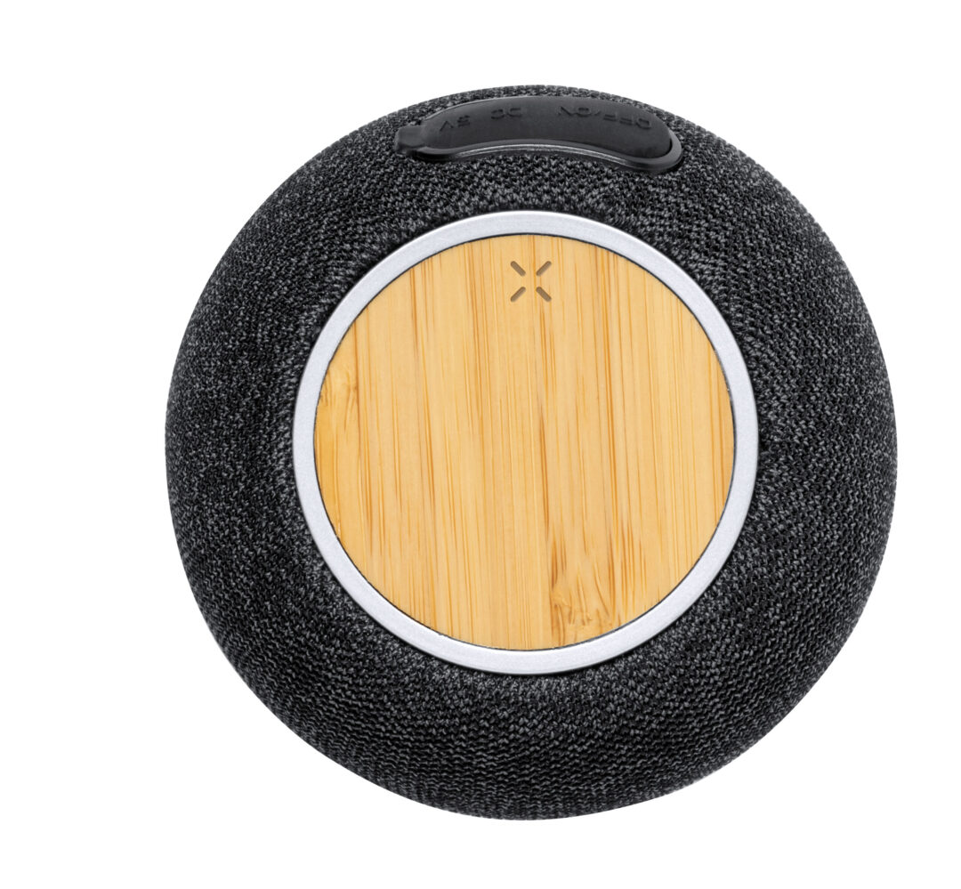 Altavoz multifunción con conexión Bluetooth. Con carga inalámbrica de 15W para dispositivos con tecnología Qi. Carcasa fabricada en bambú y poliéster RPET, 5W de potencia, batería de 1200 mAh y conexión Bluetooth 5.0. Incluye cable cargador Tipo C. Con distintivo RPET y presentado en caja individual de diseño kraft. Disponible manual de instrucciones en español e inglés.El material RPET se elabora a partir de plástico reciclado, para así fomentar la reutilización de residuos plásticos y ayudar a la sostenibilidad del planeta.