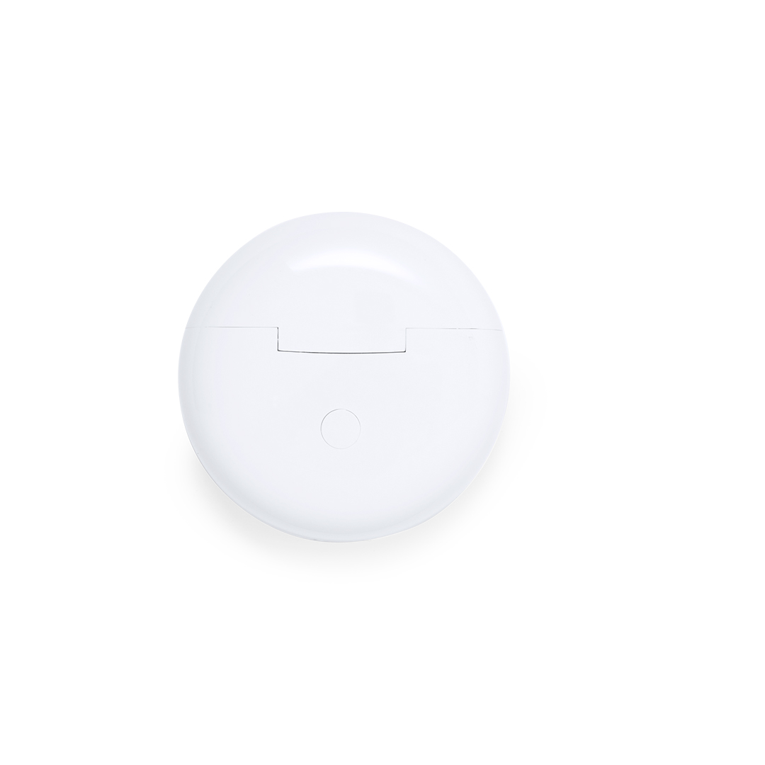 Auriculares intraurales con conexión Bluetooth 5.3 y función manos libres. De diseño ergonómico, incluyen botón de control táctil integrado en el auricular, con base de carga a juego. Batería integrada de 200 mAh y presentados en caja individual de diseño kraft. Manual de instrucciones en español e inglés.