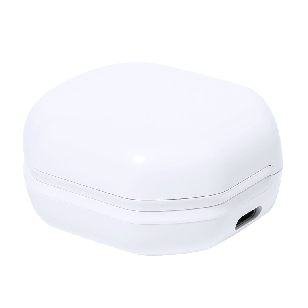 Auriculares intraurales en elegante acabado blanco y conexión Bluetooth 5.0. De diseño ergonómico y compacto, permitiendo apoyar la oreja o cubrirla sin ocasionar molestias. Incluyen botón de control táctil integrado en el auricular, con base de carga a juego. Función manos libres y recargables, con cable Tipo C incluido. Presentados en estuche individual de lujo con tapa de bisagra y con base de carga de 250mAh. Presentados en atractiva caja de diseño kraft, con manual de instrucciones en español e inglés.Fabricados conforme a los estándares RoHS y en cumplimiento con los siguientes requisitos de seguridad:Sistema de protección contra sobrecalentamiento.Sistema de protección contra sobrecarga.Sistema de bloqueo para evitar cortocircuitos.