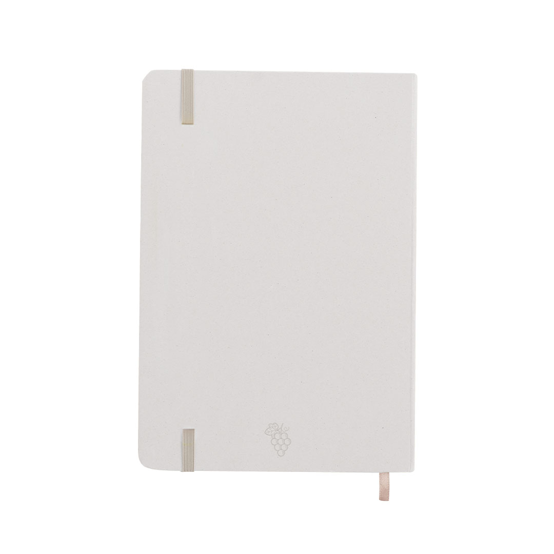 Bloc de notas A5 con tapas duras elaborado a partir de frutas. Interior con 80 hojas de disposición a una raya, con marcapáginas y banda elástica a juego. Disponible en variados colores de acabado kraft. Incluye logotipo Papel de Fruta en contraportada. Presentado en una bolsa individual reciclada.Mediante la mezcla de residuos y desechos procedentes de la industria agroalimentaria, mezclados con otros materiales reciclados, se obtiene un papel 100% sostenible: el papel de frutas. Fomentando su uso se contribuye a la reutilización de materiales, y a un mayor compromiso medioambiental.