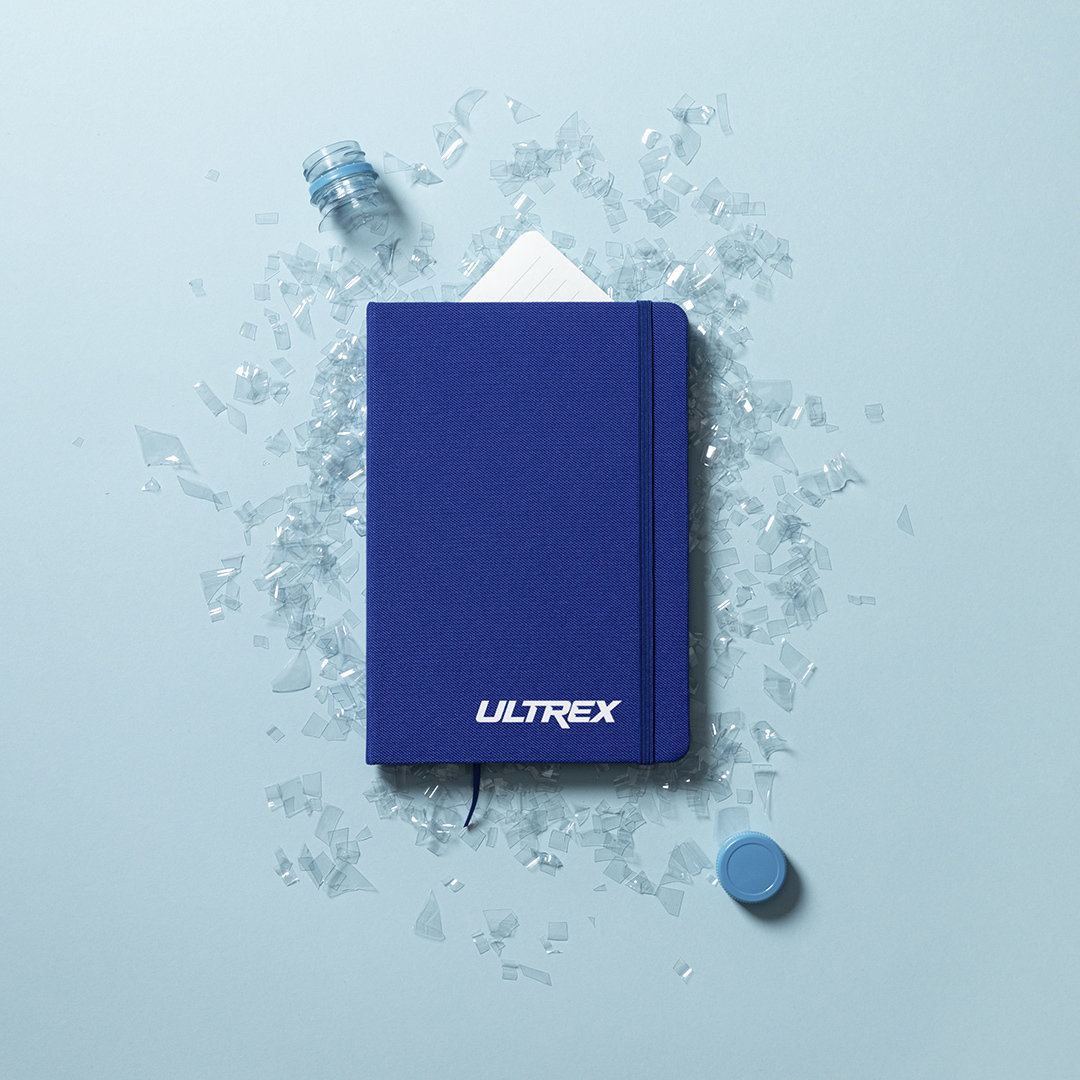 Bloc de notas de línea nature con tapas rígidas en 600D RPET, elaborado a partir de plástico reciclado para así fomentar la reutilización de residuos plásticos y contribuir a la sostenibilidad del planeta. Disponible en amplia gama de colores, incluye 80 hojas con disposición a una raya. Con elástico de sujeción y marcapáginas de tela a juego. Distintivo RPET en parte trasera.