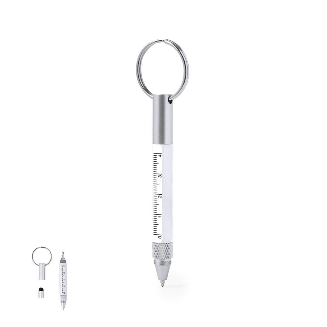 Práctico bolígrafo multifunción fabricado en aluminio. Con 5 funciones diferentes: bolígrafo, regla, puntero, destornillador plano y phillips. Disponible en variada gama de colores y presentado en bolsa individual reciclada.