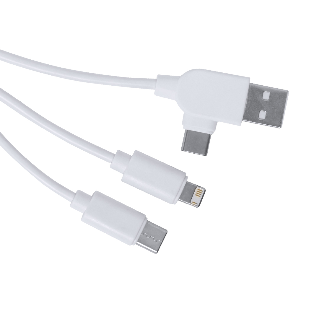 Cable cargador fabricado en combinación de bambú y material reciclado a partir de cartones de leche. Incluye conexión dual USB/Tipo C + conexiones Micro USB, Tipo C y Lightning. Con original anilla de transporte y logotipo cartones de leche reciclados. Presentado en caja individual de diseño kraft, con papel protector incluido. 5V DC 2.4A.Los cartones de leche se componen en su mayor parte de cartón y aluminio. Durante su proceso de reciclado, se separan los distintos materiales del envase para su reutilización y nuevo uso, contribuyendo así a recorrer el camino infinito de la economía circular. Este material se caracteriza por su alto grado de reciclabilidad, así como por su ligereza y resistencia.Materiales como el bambú fomentan la utilización de materias primas naturales, reduciendo las emisiones contaminantes. Proviene de una planta de gran resistencia y versatilidad, con crecimiento y regeneración rápidos, siendo una excelente alternativa al uso de madera tradicional.Fabricado conforme a estándares RoHS, con sistema de bloqueo para evitar cortocircuitos.