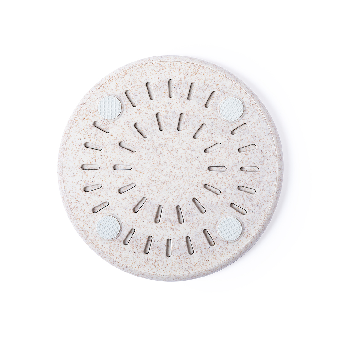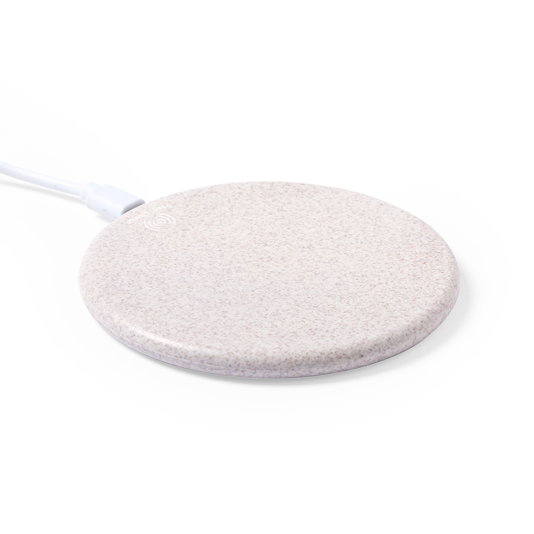Cargador inalámbrico de diseño circular fabricado en caña de trigo, para así fomentar la utilización de materias primas naturales y reducir las emisiones contaminantes. Con función carga rápida de 10W e indicador led. Cable de carga micro USB incluido y compatible con dispositivos equipados con tecnología de carga inalámbrica. Protección de seguridad para evitar sobrecalentamiento, sobrecarga y cortocircuito. Presentado en atractiva caja de diseño nature.