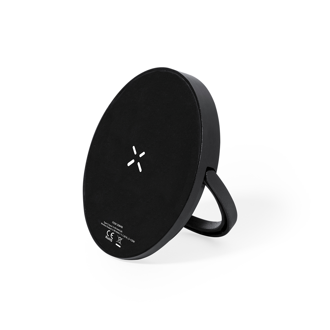 Cargador inalámbrico magnético 15W, fabricado en resistente aluminio. Con soporte regulable incluido e indicador de estado de carga. Compatible con terminales equipados con tecnología de carga inalámbrica e incluye cable de carga USB de 1m, con conector de aluminio. Amplia superficie de marcaje y presentado en atractiva caja de diseño. Disponible manual de instrucciones en español e inglés.Fabricado conforme a los estándares RoHS y en cumplimiento con los siguientes requisitos de seguridad: Sistema de protección contra sobrecalentamiento. Sistema de protección contra sobrecarga. Sistema de bloqueo para evitar cortocircuitos.