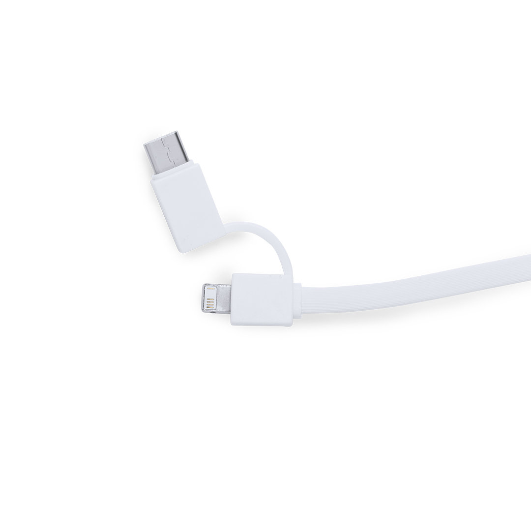 Cargador inalámbrico de diseño ultra compacto en diseño monocolor blanco. Conexión dual micro USB y Lightning, con adaptador Tipo C y luz indicadora de carga. Compatible con dispositivos equipados con tecnología de carga inalámbrica.