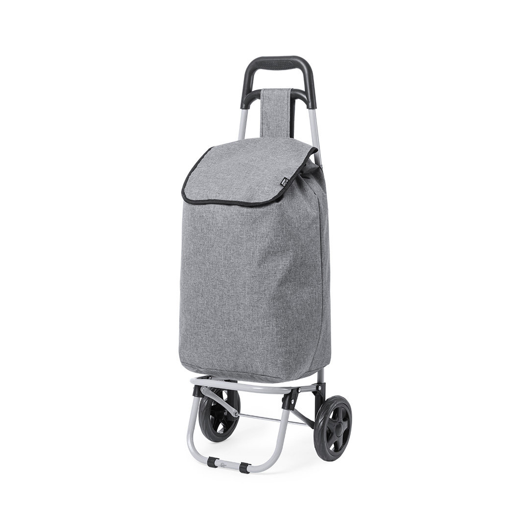 Carro de compra plegable y línea nature. Fabricado en resistente poliéster 600D RPET, elaborado a partir de plástico reciclado, para así fomentar la reutilización de residuos plásticos y ayudar a la sostenibilidad del planeta. Con asa reforzada, cuerpo metálico tubular, bolsillo de cremallera posterior y soportes con gomas de protección. Ruedas reforzadas de alta calidad. Etiqueta distintiva RPET en la solapa.