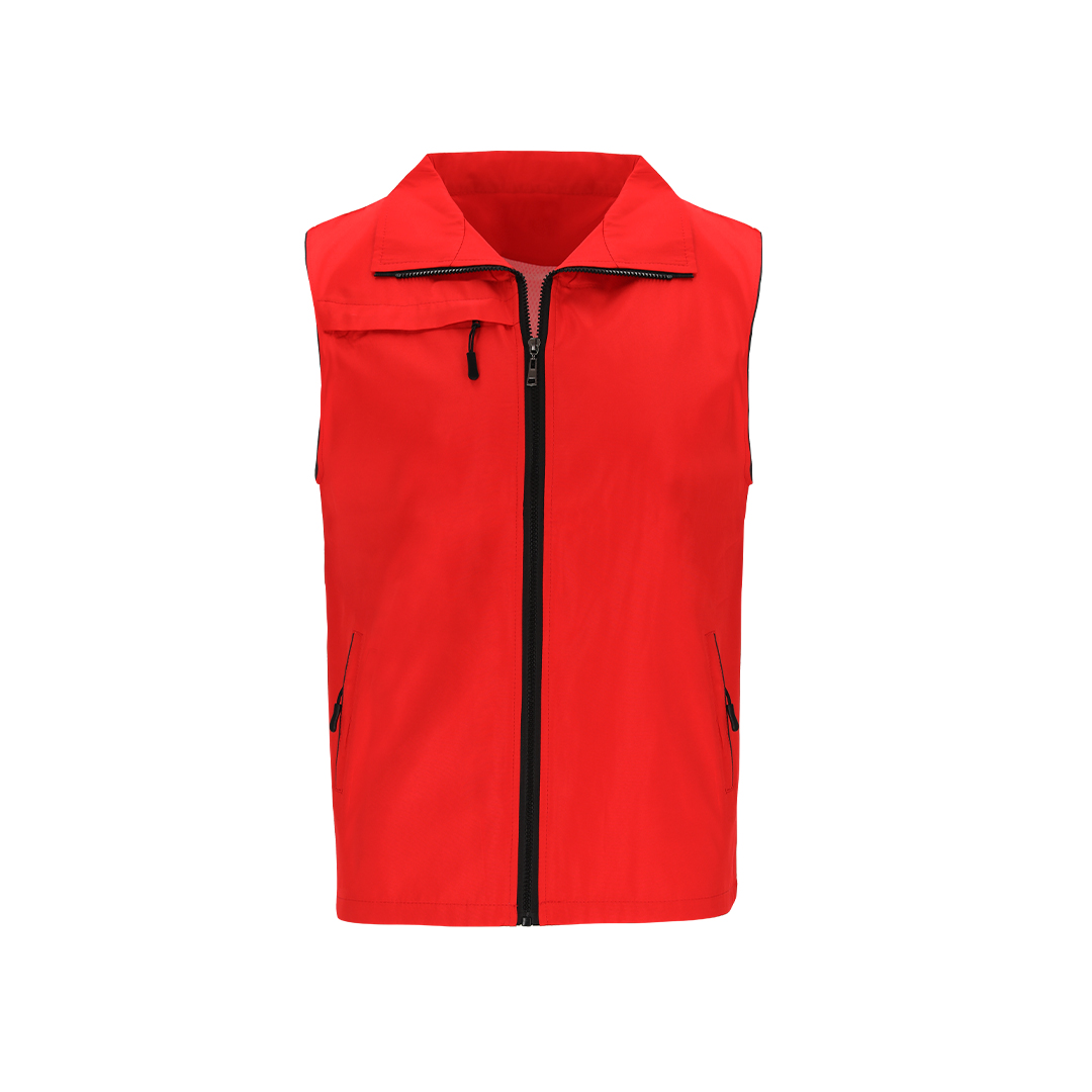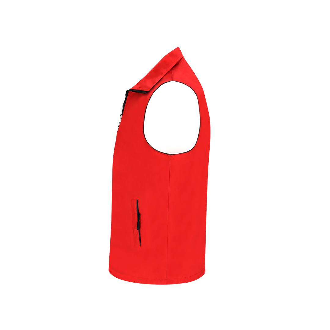 Chaleco Unisex de tejido ligero y transpirable con interior confeccionado en tejido de malla blanco. Con cremallera frontal negra y tirador plateado. Incluye un bolsillo exterior en el pecho derecho y dos bolsillos laterales con cremalleras y tiradores en color negro. Cuenta con media luna en el interior del cuello.