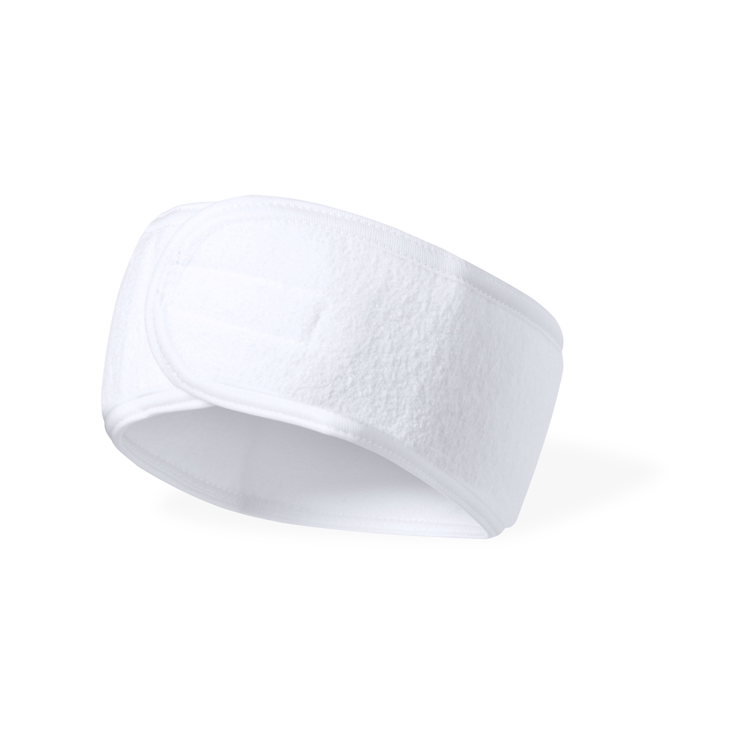 Cinta para pelo fabricada en suave poliéster. Banda ajustable a la cabeza con velcro para despejar el pelo de la cara mientras se aplican los tratamientos beauty.