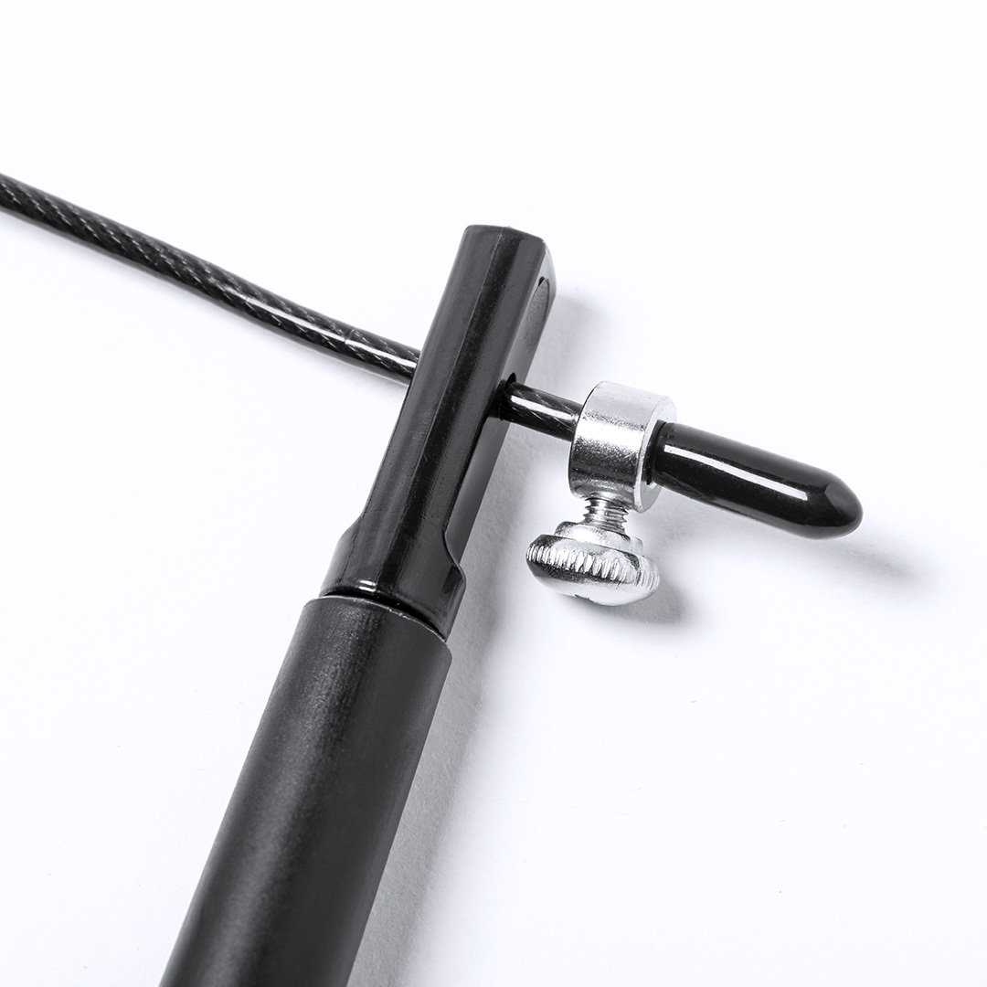 Comba de calidad premium, con cuerda extra larga ajustable de 3m de largo y fabricada en acero con cobertura de resistente PVC. Con mangos de sujeción ergonómicos y presentada en funda de poliéster RPET con cierre de cordón, elaborada a partir de plástico reciclado para así fomentar la reutilización de residuos plásticos y contribuir a la sostenibilidad del planeta. Etiqueta distintiva RPET en la funda.