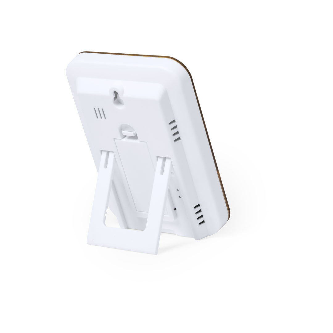 Estación meteorológica de línea nature con frontal en bambú. Funciones higrómetro y termómetro. Alimentación a pilas (2xAAA no incluidas) y presentado en atractiva caja de diseño eco.