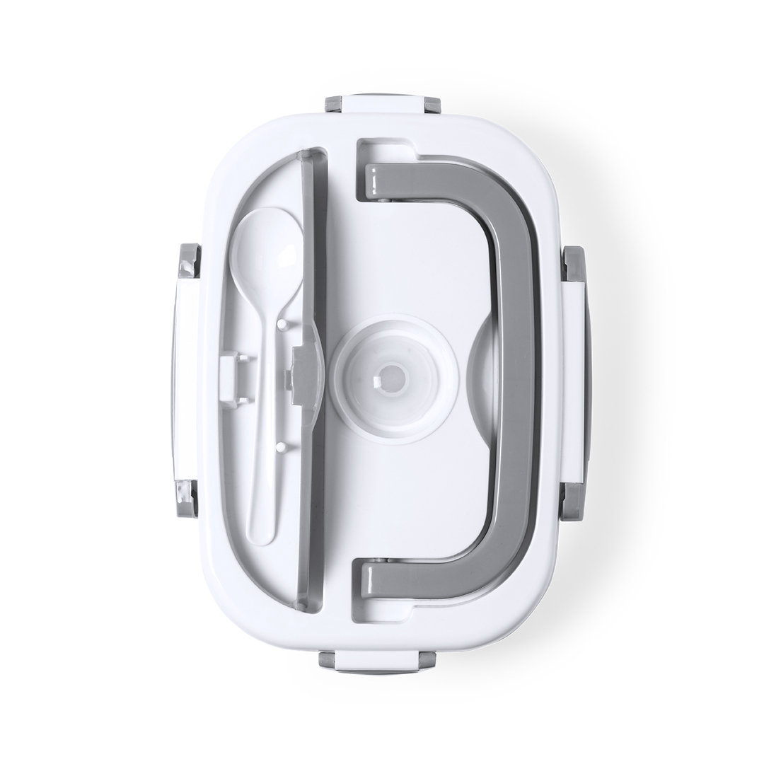 Fiambrera eléctrica de 1l de capacidad . Fabricada en resistente ABS libre de BPA y en diseño bicolor. Incluye práctica asa de transporte y tapa hemética con cierres de seguridad laterales. 2 compartimentos principales y compartimento auxiliar con cierre hermético. Cuchara incluida, con cable de alimentación para enchufe europeo. Ideal para calentar la comida en la oficina. Presentada en atractiva caja de diseño.