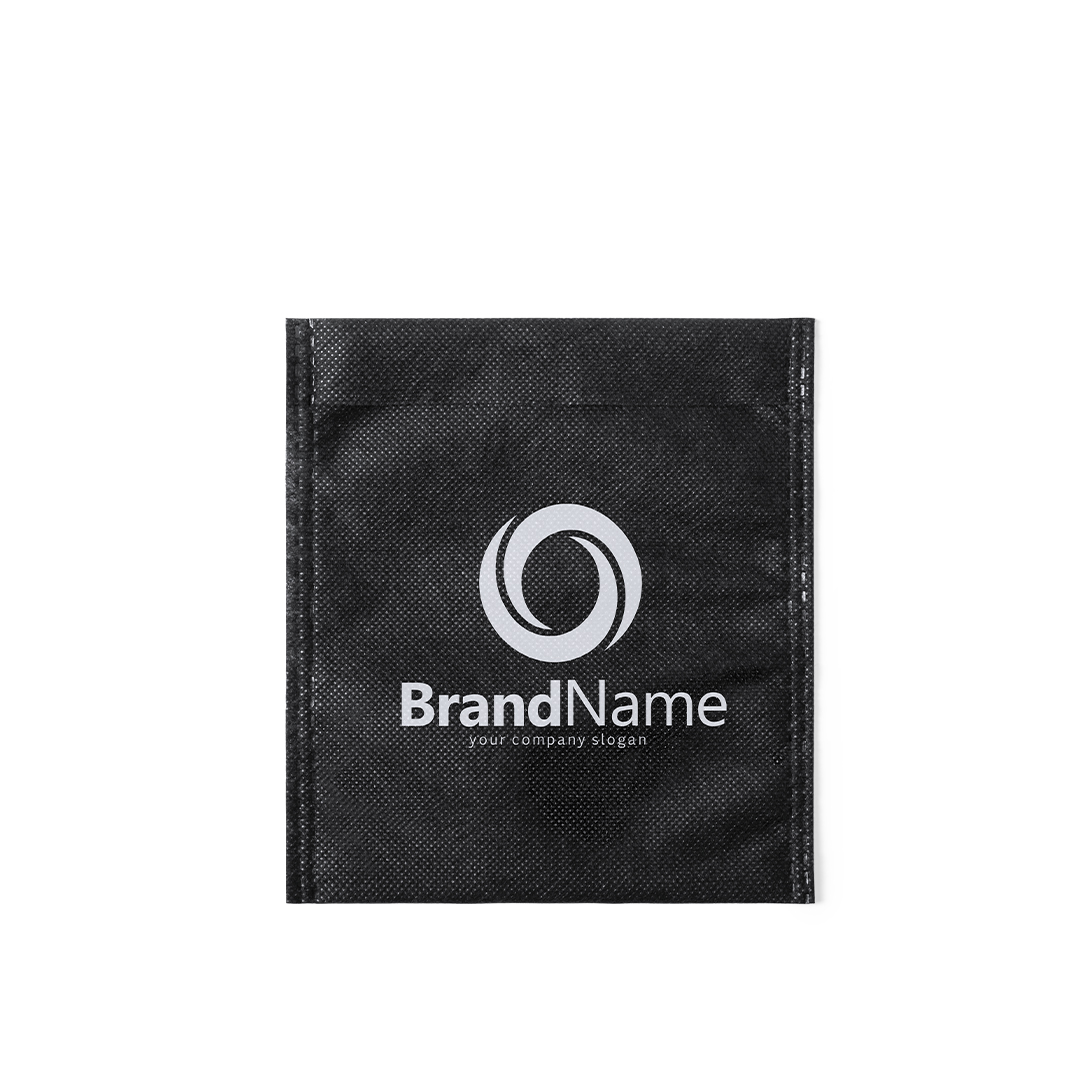Funda multiusos fabricada en tejido non-women de color negro y acabado termosellado, transpirable y lavable. De tamaño compacto e ideal para impresión.