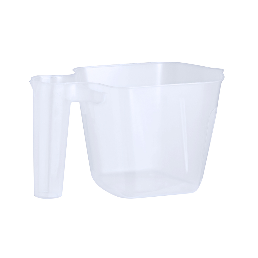 Jarra medidora de 1L fabricada en resistente PP transparente, con asa medidora integrada. Compartimento principal de 1 litro de capacidad, con medidor lateral en tramos en 50 ml. Asa para tomas más precisas, con medidor lateral en tramos de 5 ml. Vertedor para evitar derrames en ambos recipientes.