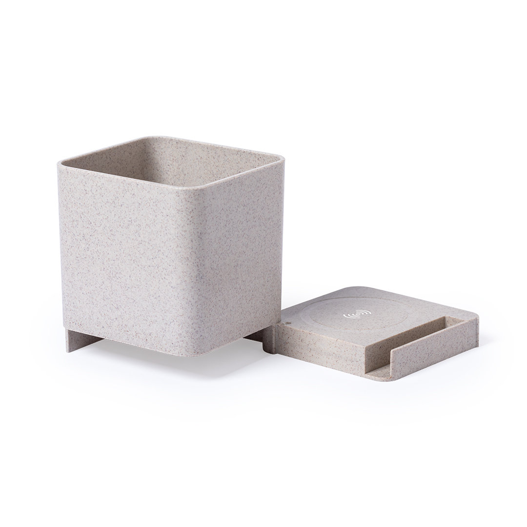 Lapicero multifunción 4 en 1 de línea nature. Carcasa en caña de trigo, para así fomentar la utilización de materias primas naturales y reducir las emisiones contaminantes. Con funciones lapicero, soporte para smartphone, cargador inalámbrico y puerto USB (3xUSB 2.0). Compatible con smartphones con tecnología de carga inalámbrica, incluye cable micro USB en color blanco de 1 metro de largo. Presentado en atractiva caja de diseño eco. Disponible manual de instrucciones en español e inglés.