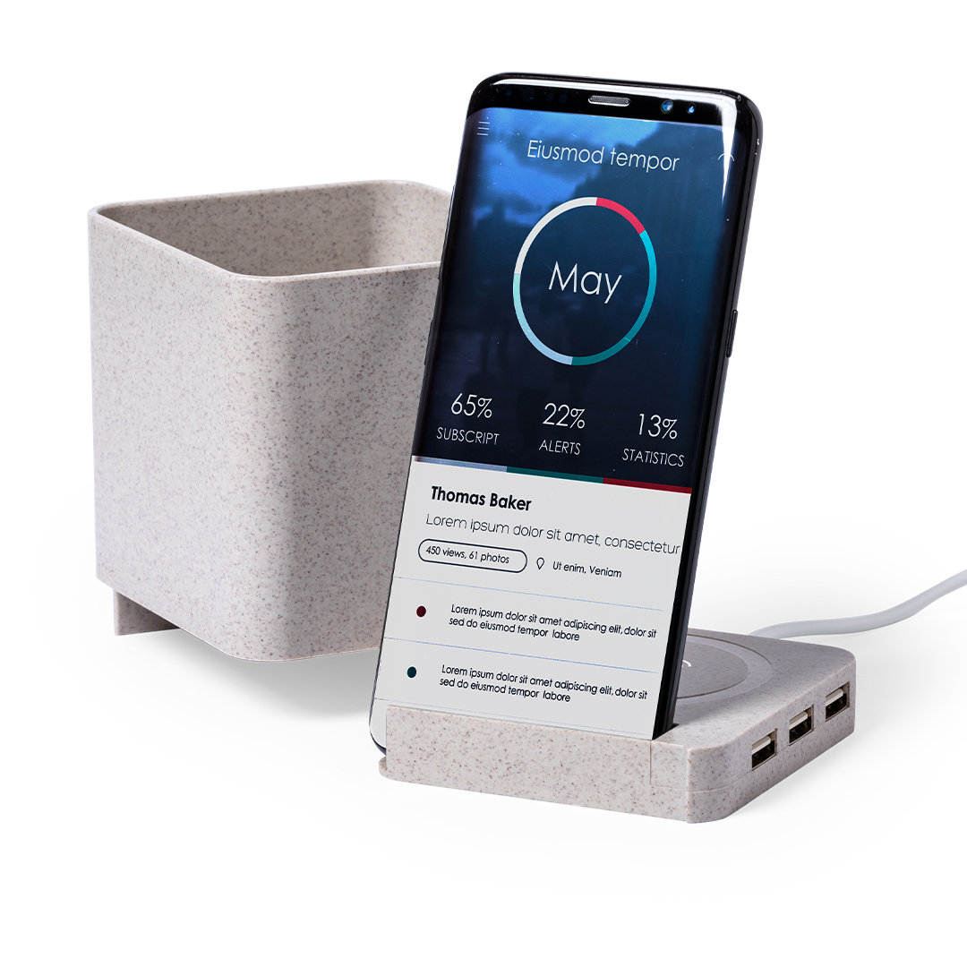 Cargador Inalámbrico 5W. 3 Puertos. USB 2.0. Caña de Trigo/ ABS.