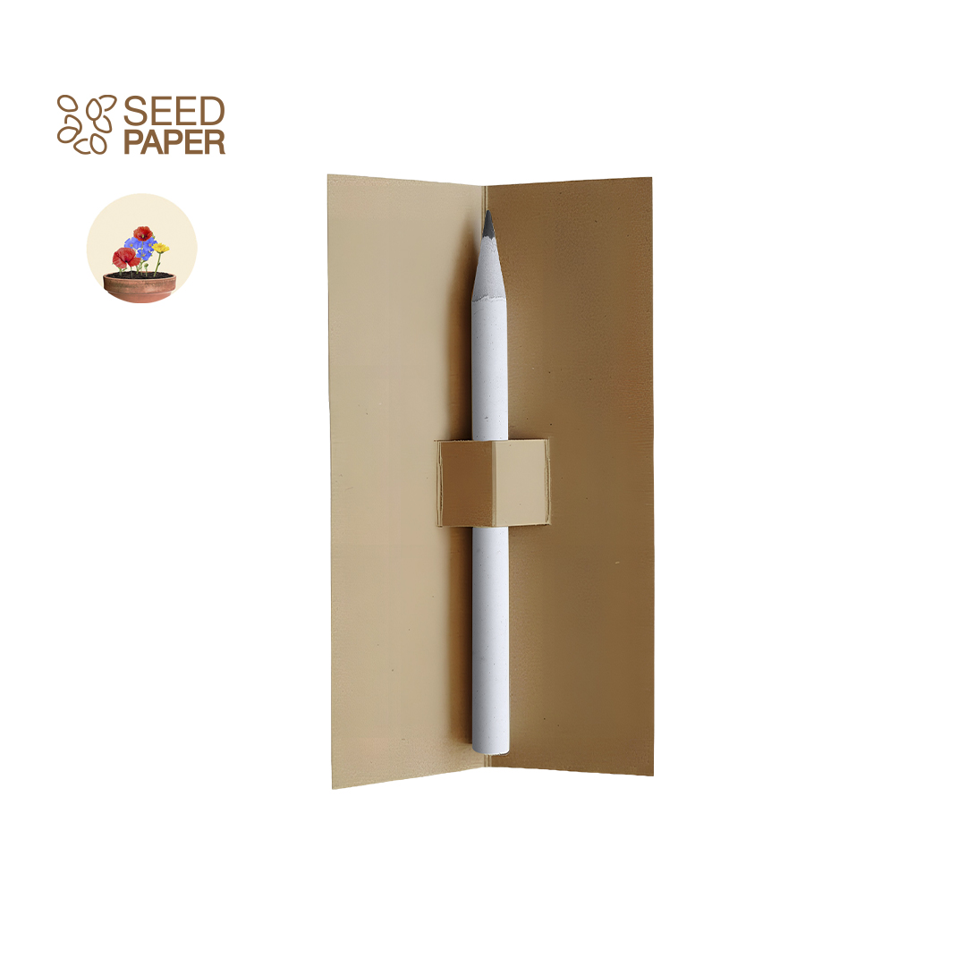 Lápiz plantable, fabricado en papel de semillas natural. El lápiz contiene flores silvestres.Presentado en estuche kraft con instrucciones de plantado en la cubierta trasera.
