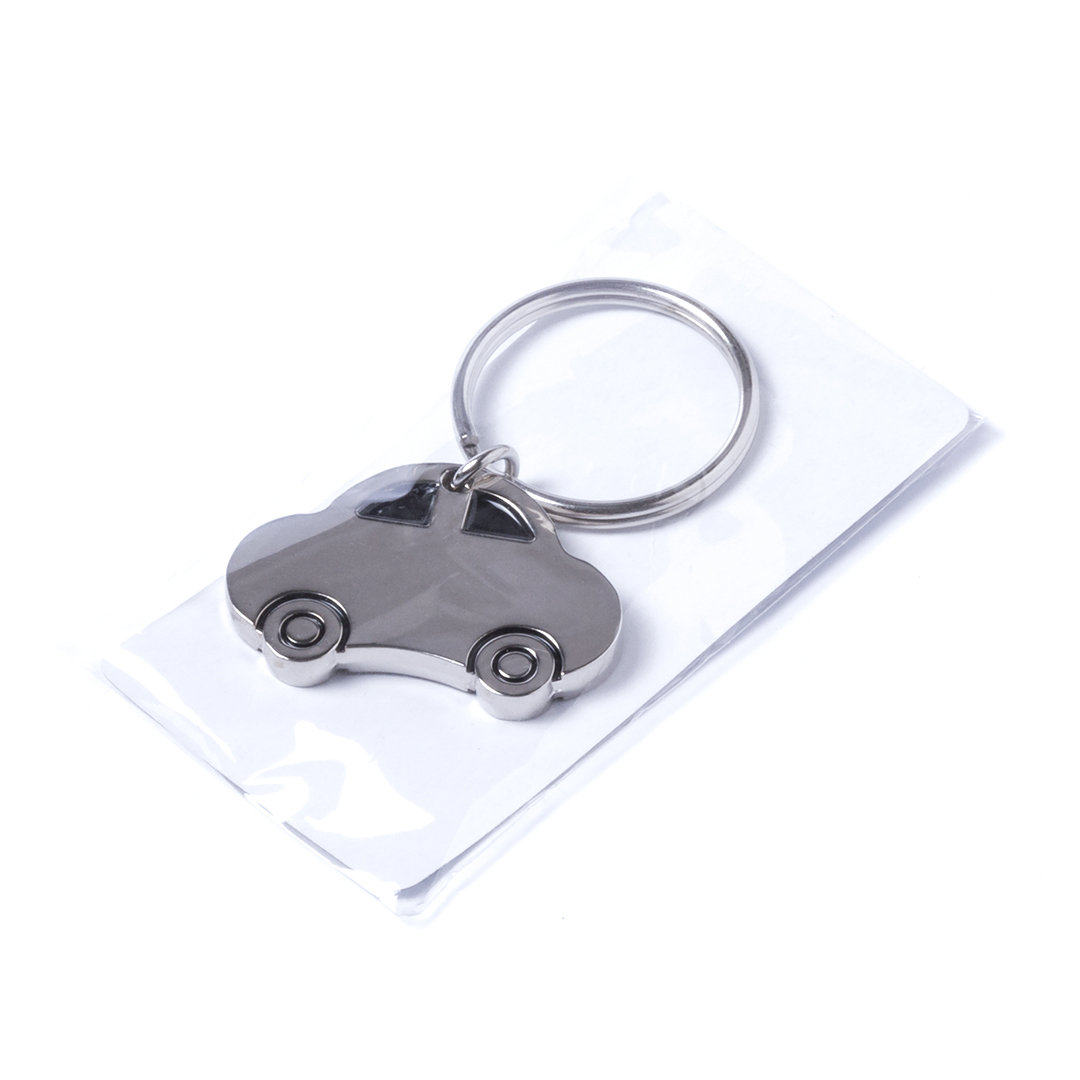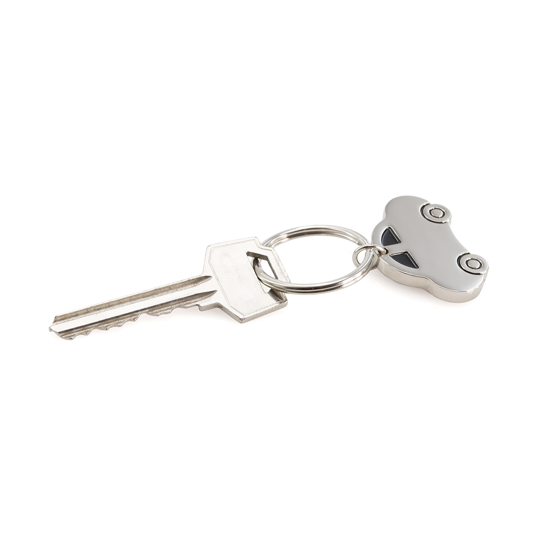 Llavero metálico en divertido diseño de coche especialmente diseñado para marcaje en láser.