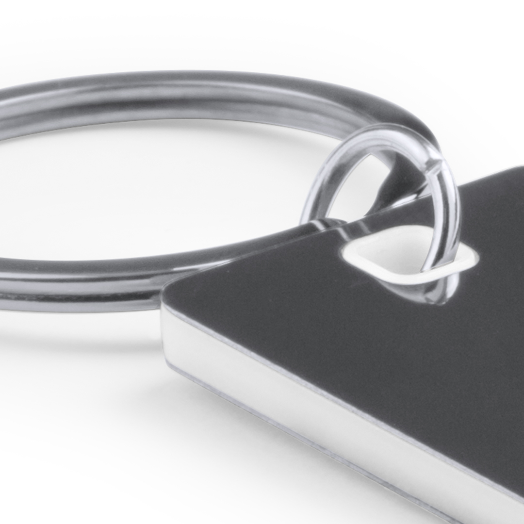 Llavero de acero inox en diseño bicolor de variados colores y especialmente diseñado para marcaje en láser.