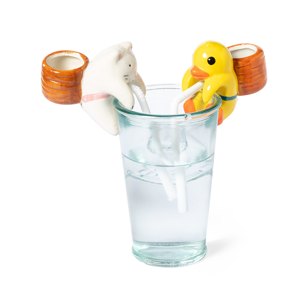 Maceta chupón en divertidos diseños de pato y gatito. Solamente hay que dejar la pajita en contacto con el agua para que la absorba y así florezcan unas espectaculares petunias. Cuerpo en cerámica, con 10-12 semillas incluidas. Presentada en atractiva caja de diseño.