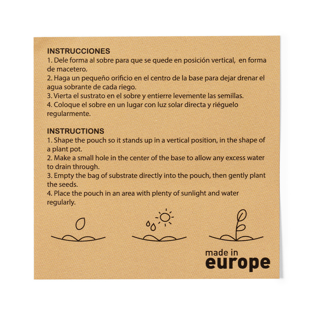Maceta de línea nature con semillas de capuchina. Presentada en sobre de papel reciclado de diseño, con caja interior de 6 ceras para colorear en estuche de cartón reciclado. Un gadget ecológico que combina el cuidado del medio ambiente con la diversión de colorear.