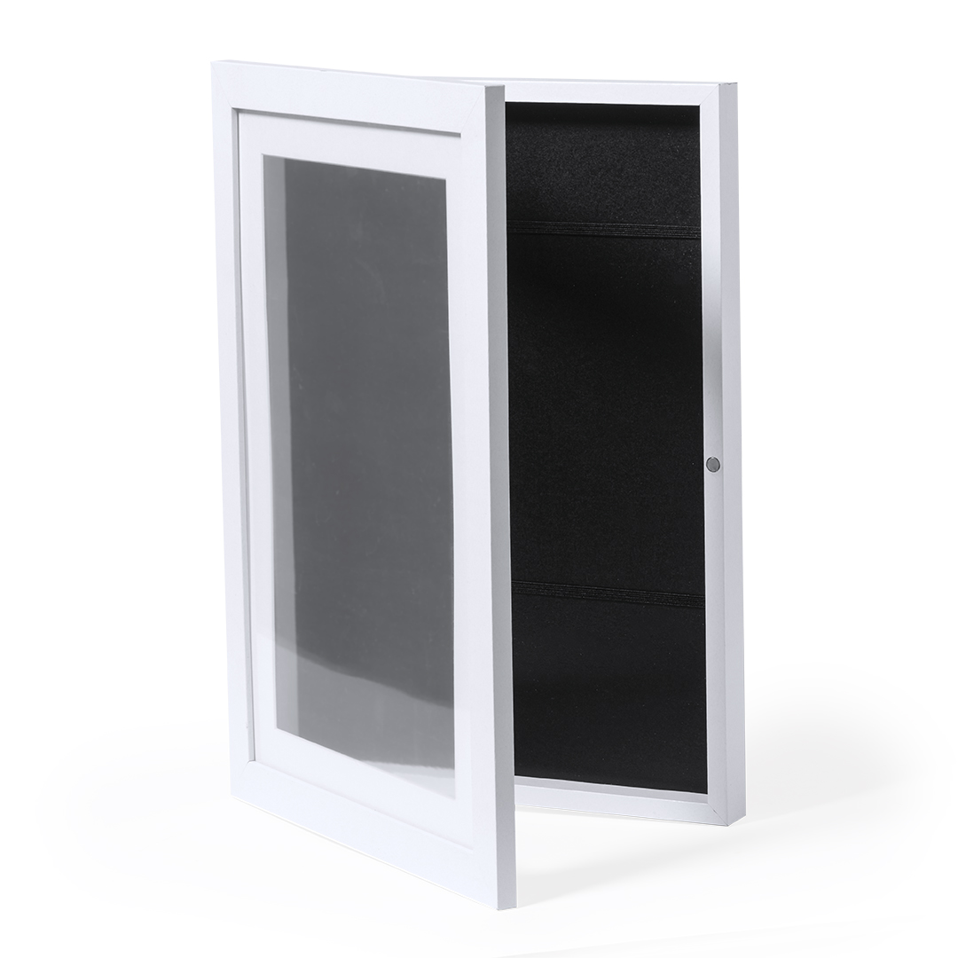 Elegante marco de arte que combina funcionalidad y estilo. Ofrece un compartimento para almacenar diseños de tamaño A4 sujetos por bandas elásticas, mientras que en su portada incorpora un marco para resaltar el diseño elegido. Se destaca por su apertura de bisagras y cierre magnético, garantizando un manejo práctico y seguro. Presentado de forma individual en caja de diseño kraft.