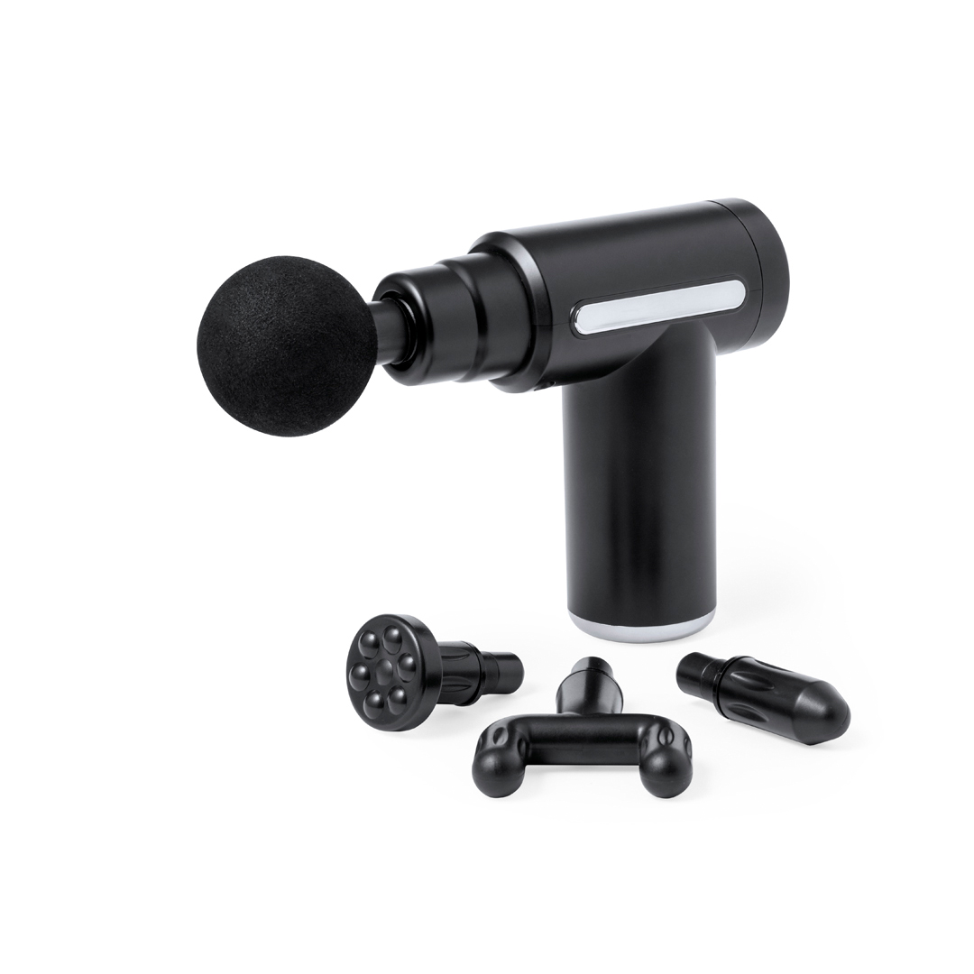 Masajeador eléctrico. Ayuda a relajar los músculos, aliviar los efectos del entrenamiento, liberar tensión y revitalizar el cuerpo. Con dos posiciones de intensidad y 4 cabezales para usar en distintas zonas del cuerpo. Batería recargable de larga duración de 1200 mAh – cable de carga USB incluido-. Disponible manual de instrucciones en español e inglés.