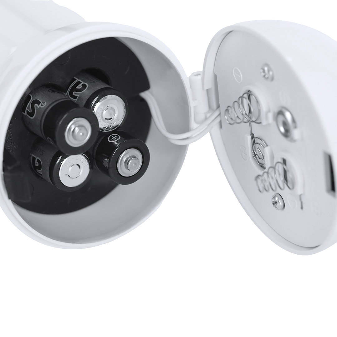 Megáfono plegable en ABS en color sólido con acabado brillante. Incluye botones de control en el extremo, sirena, grabadora, ON/OFF y control de volumen. Asa plegable con correa fija en color gris unida mediante anilla metálica. Funciona con 4 pilas AA (no incluidas).