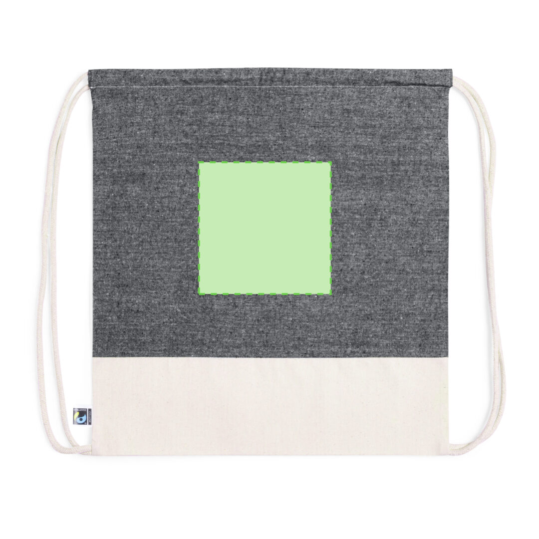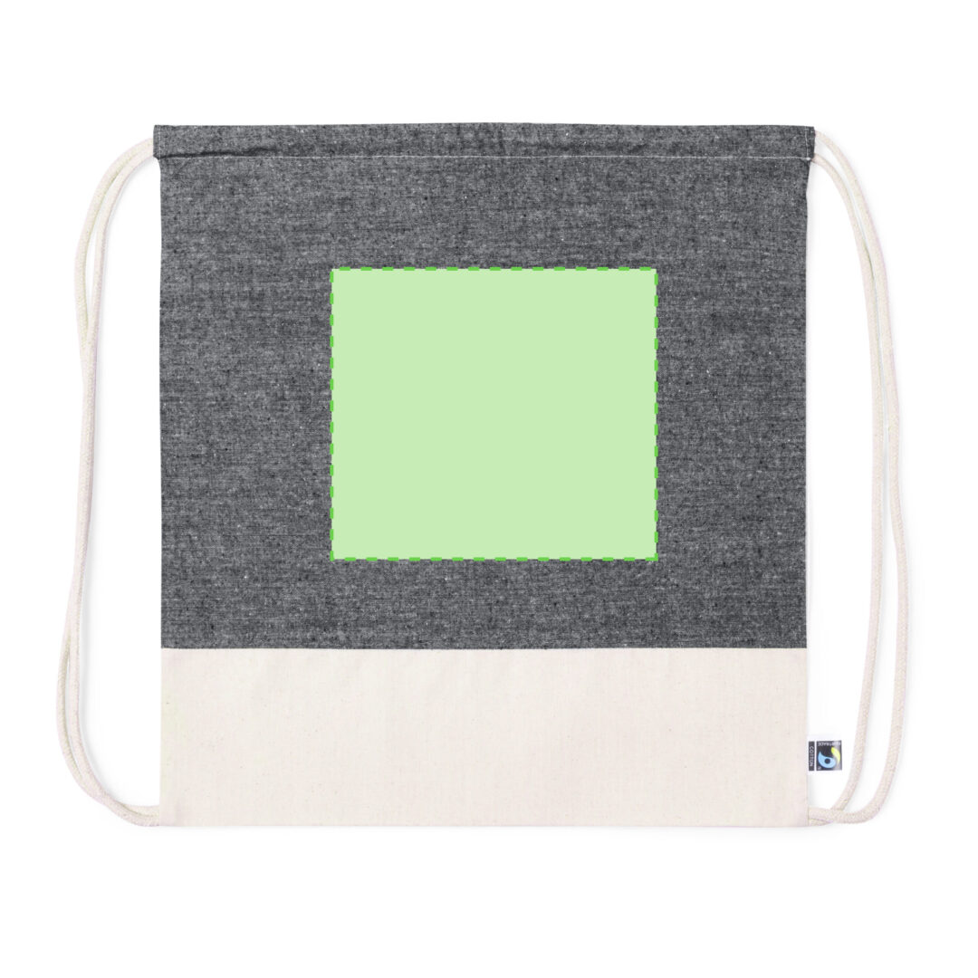 Mochila de cuerdas de línea nature, fabricada en algodón 100% de 140g/m2. Con certificación Fairtrade (Comercio Justo), un sistema comercial solidario y alternativo al convencional que persigue el desarrollo de los pueblos y la lucha contra la pobreza. De acabado cosido y cuerdas en algodón a juego con base en tono natural y parte frontal superior disponible en tonos negro y natural. Incluida etiqueta Fairtrade y hangtag distintivo en cartón reciclado.