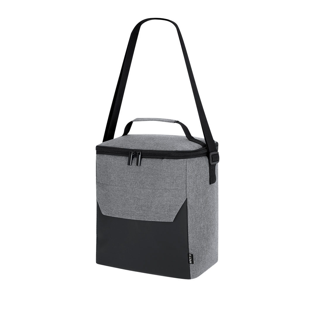 Nevera fabricada en resistente RPET 600D en combinación con PU. Incluye compartimento principal, con cierre de cremallera y doble tirador metálico, con interior isotermo en PEVA. Bolsillo frontal con cierre de cremallera. Incluye cinta bandolera ajustable y asa de mano acolchada en la parte superior. Etiqueta exterior con distintivo RPET.El material RPET se elabora a partir de plástico reciclado, para así fomentar la reutilización de residuos plásticos y ayudar a la sostenibilidad del planeta.