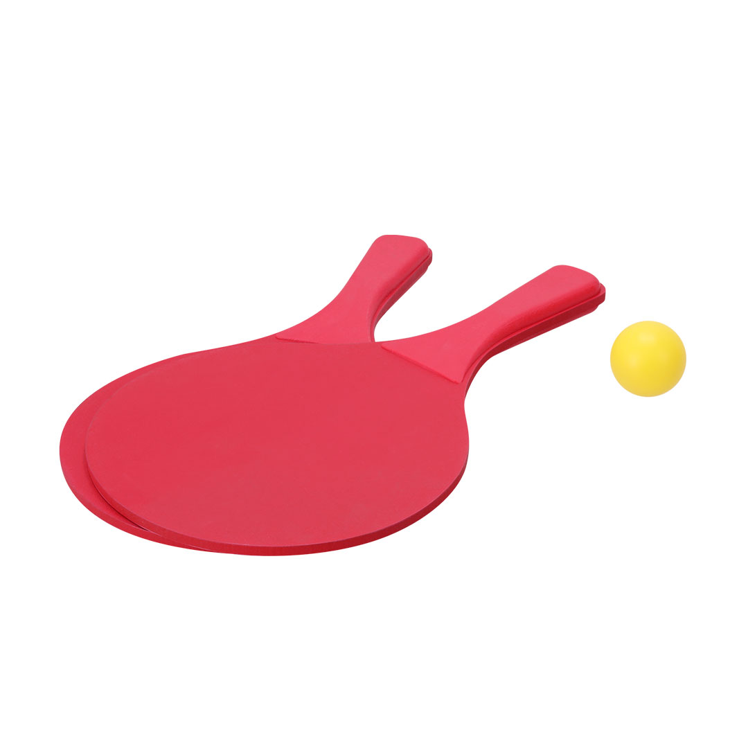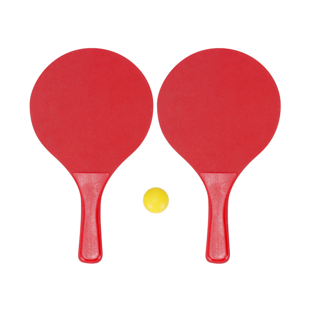 Par de palas de playa de alta calidad en madera natural de variada gama en vivos colores. Con mango reforzado a juego y presentadas en bolsa redecilla con pelota.