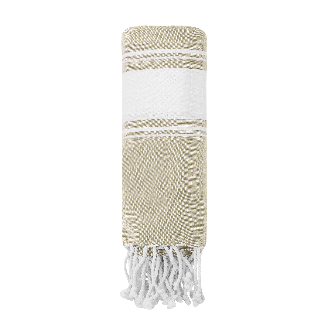 Suave pareo de toalla de 180g/m2 en combinación de algodón y poliéster. Disponible en variada gama de colores en tono bicolor. Presentado individualmente en bolsa.