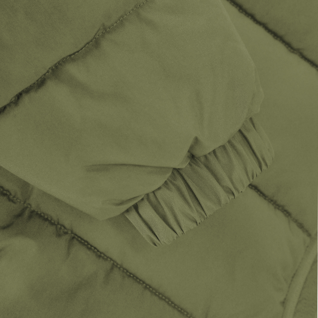 Parka infantil unisex acolchada con capucha fija y visera integrada. Incorpora cremallera frontal a tono con doble tirador y protector de barbilla. Puños elásticos para un ajuste cómodo y dos bolsillos laterales con cierre de cremallera a juego. Incluye acceso interior para marcaje en pecho izquierdo y espalda, ideal para personalización.