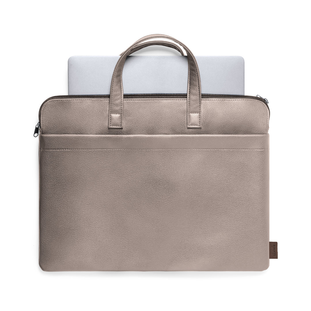 Resistente portadocumentos premium, fabricado en cuero reciclado. Compartimento principal con cierre de cremallera y doble tirador metálico. Interior acolchado, con bolsillo exterior y asas reforzadas a juego. Etiqueta exterior con distintivo cuero reciclado. El cuero reciclado rescata las fibras desechadas en los procesos de fabricación del cuero, minimizando el desperdicio de material, contribuyendo a reducir el impacto ambiental y manteniendo a la vez sus propiedades originales.