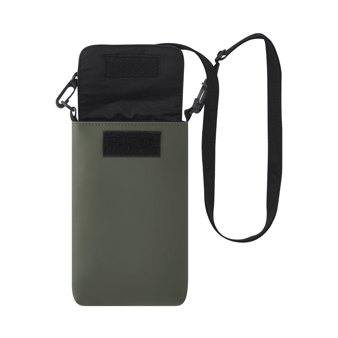 Portatodo fabricado en suave PU. Compartimento principal con cierre de solapa con cierre en velcro. Incluye cinta ajustable plana con doble enganche de mosquetón giratorios.