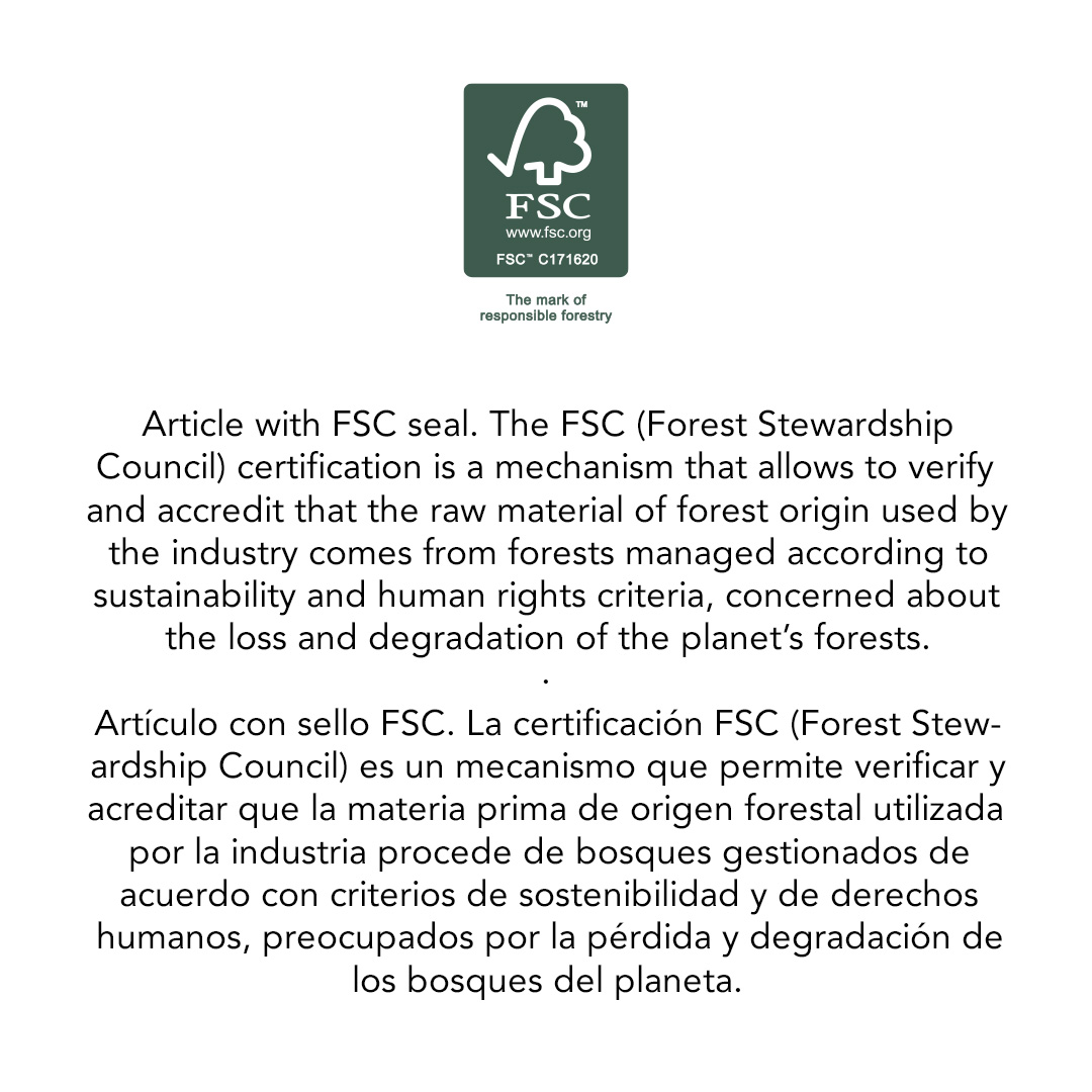 Batería auxiliar externa de línea nature con capacidad de 10.000 mAh. Incluye cargador inalámbrico de 5W, apto para todos los dispositivos compatibles con carga inalámbrica, y un panel de carga solar. Fabricada en bambú procedente de bosques sostenibles con certificación FSC. Cuenta con 2 salidas USB, 1 entrada Micro USB, y una entrada tipo C. Cable de carga micro USB incluido. Con indicador de estado de carga y presentada en atractiva caja de diseño eco. Distinción FSC sobre el producto. Las capacidades mostradas en todas nuestras baterías auxiliares externas son reales, incorporando todas ellas baterías de grado A y no recicladas, con una vida útil de al menos 500 ciclos de carga y según normativa CE. Además, están fabricadas conforme a los estándares RoHS y en cumplimiento con los siguientes requisitos de seguridad: Sistema de protección contra sobrecarga del power bank. Sistema de protección contra descarga completa que proporciona una mayor durabilidad del power bank. Sistema de bloqueo para evitar cortocircuitos. Sistema de transferencia de carga constante, acorde con la capacidad del dispositivo de destino.