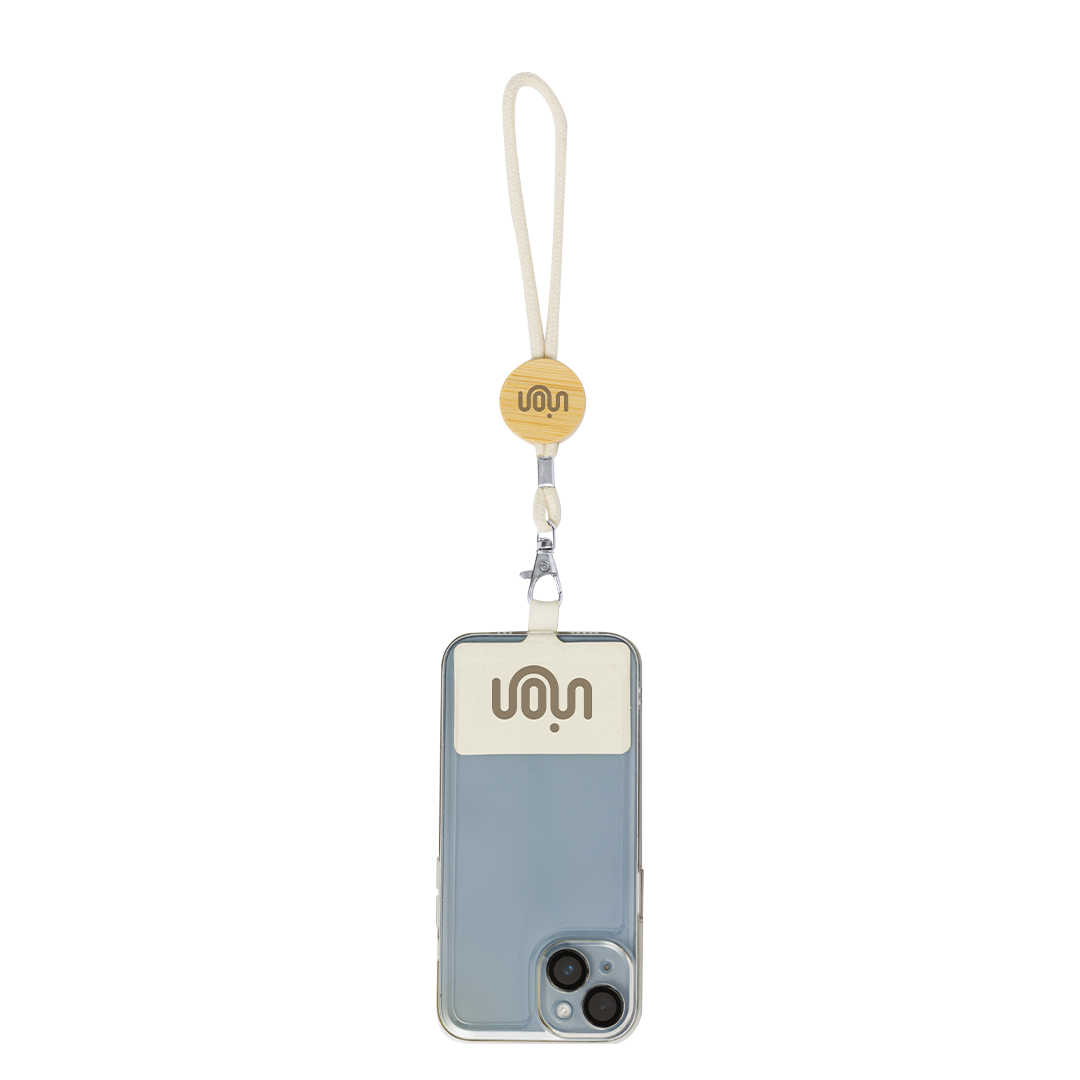 Original pulsera portamóvil en suave algodón, adaptable a todo tipo de muñecas. Con accesorio de transporte para situar entre la funda y el smartphone. Pieza central de bambú para personalización, especial para grabado en láser. Presentado individualmente en bolsa de papel reciclado.Materiales como el bambú fomentan la utilización de materias primas naturales, reduciendo las emisiones contaminantes. Proviene de una planta de gran resistencia y versatilidad, con crecimiento y regeneración rápidos, siendo una excelente alternativa al uso de madera tradicional.