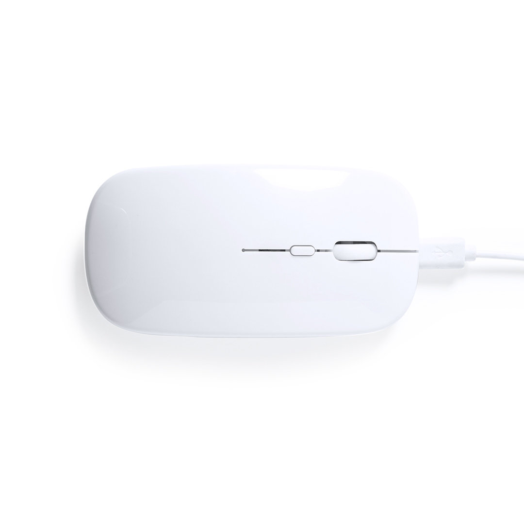 Ratón óptico inalámbrico con diseño ergonómico. Carcasa fabricada en ABS reciclado (RABS) y con certificación RCS, que garantiza el origen reciclado del mismo. Recargable USB (cable incluido) y presentado en caja individual de diseño eco en cartón kraft.
