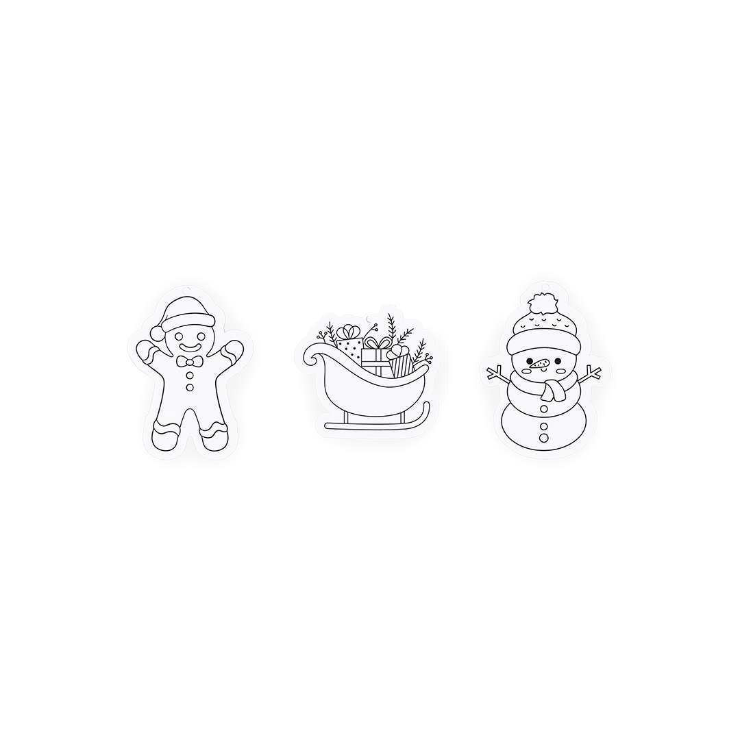 Set de adornos con 6 originales diseños navideños para colorear y decorar el árbol de navidad. Incluye 6 lápices de madera en diferentes colores. Fabricados en cartón y presentados en una bolsa reciclada.