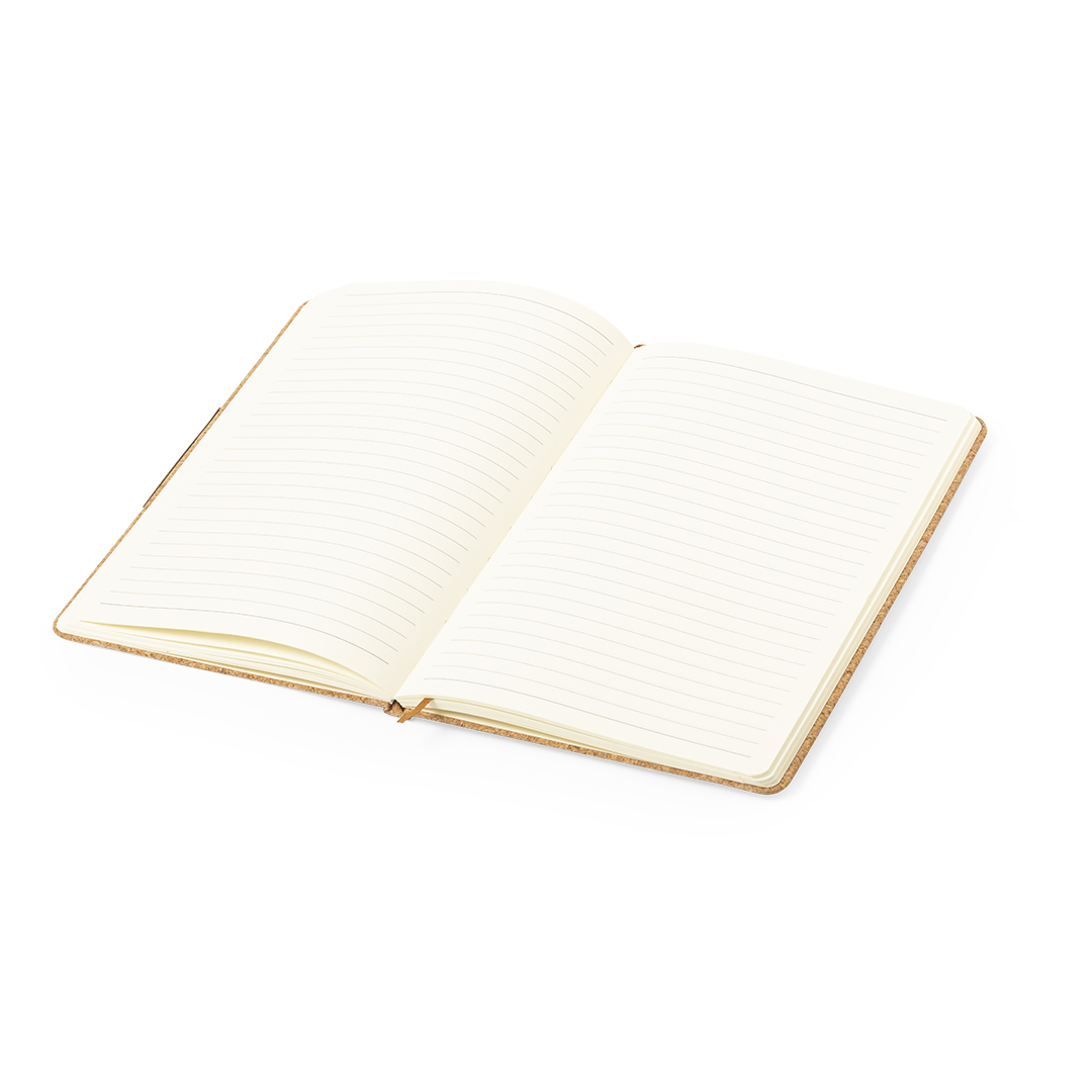 Set de bloc de notas y bolígrafo elaborado en corcho. Incluye:Bloc de notas de tapas rígidas, con detalle metálico en la portada, marcapáginas de tela y elástico de sujeción a juego. 80 hojas interiores con disposición a una raya. Bolígrafo con cuerpo recubierto en suave corcho. Elegante clip metálico y accesorios a juego, de mecanismo pulsador y en tinta azul. Llavero memoria USB de 16GB en forma de corcho de botella. Set presentado en elegante estuche de diseño en color kraft, con compartimento independiente para cada artículo.Elaborado con elementos vegetales para así fomentar la utilización de materias primas naturales y reducir las emisiones contaminantes.