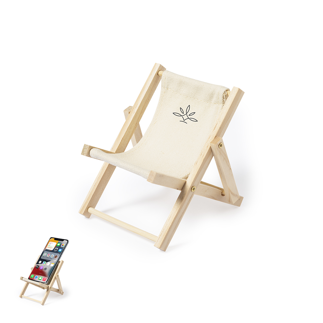 Original soporte para smartphone plegable, con estructura fabricada en madera y tela en 100% algodón de acabado natural.
