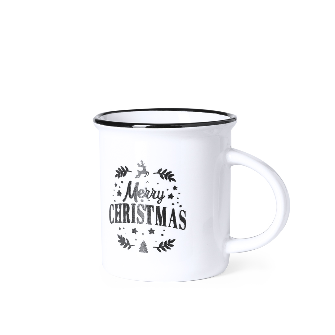 Taza de cerámica con diseño navideño vintage y 320 ml de capacidad, apta para microondas. Presentada en atractiva caja individual kraft.