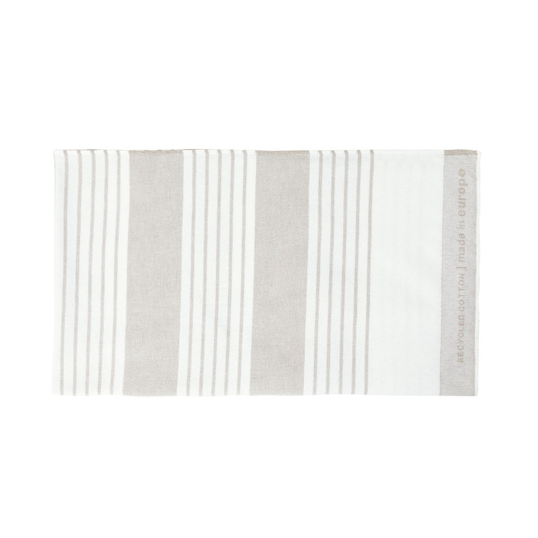 Toalla de línea nature y acabado color tierra. De fabricación europea y en combinación de algodón reciclado GRS y poliéster de 330g/m2. Con certificación GRS (Global Recycled Standard / Estándar de Reciclaje Global) que acredita el origen reciclado del material usado en la fabricación del producto. Tamaño 150 x 80 cm.